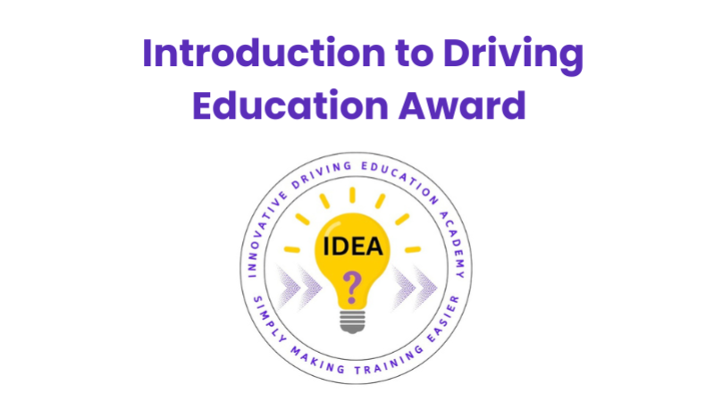 The Introduction to Driving Education Award (IDEA Award) – 13 modules combining in-car and academic training, leading to an internationally recognised qualification.